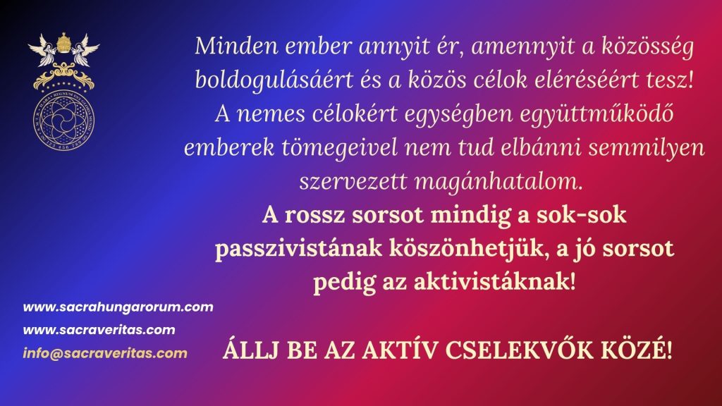 Következő hírlevelünkben ehhez a témakörhöz kapcsolódóan a magyarság küldetéséről, az ún. „ezeréves átokról” és annak feloldásáról, a MAGYAR NEMZET KARMAOLDÁSÁRÓL is szó lesz.